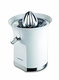 Presse-agrumes doté d’une service direct au verre. Tamis en métal, cône en acier inoxydable, bec verseur avec système anti gouttes, couvercle de protection contre la poussière, range-cordon. Démontable et compatible lave-vaisselle. 85 W. Coloris blanc et inox.